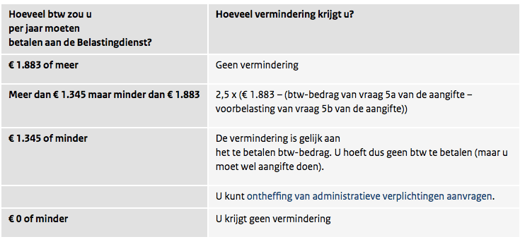 Wat is de hoogte van de vermindering volgens de kleineondernemersregeling?